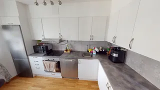 Lovely 4-room apartment on the ground floor with modern standards and an open-plan layout between the kitchen and living room. Includes dual balconies accessible from both the kitchen and living area. Appliances like a dishwasher, washing machine, and tumble dryer are included in the rent. Equipped with a security door. Located next to a forest glade and close to Krusgårdsparken’s outdoor gym, adventure playground, and parkour park. Move-in date per agreement. Parking is available in a separate queue.